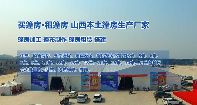 山西晉安利篷房制造有限公司,位于山西省太原市。我們專注設計、生產、制造、銷售、租賃各種跨度、尺寸的篷房。根據用戶要求提供訂制服務。 我們從一個小作坊起步,發展成為篷房、展覽設備的生產廠家,起初的產品主要用于戶外婚禮、房產奠基促銷、汽車展、服裝展、啤酒節、音樂節等各種展會、會展、會議會務活動,我們以質量和服務贏得了客戶的信任。 此外,我們還為制造業、物流業、商品流通業,建設戶外裝配式店鋪、臨時倉庫,裝配式體育館,臨時廠房等。 除了生產制造外,我們還維修所有篷房配件,如各種厚度、不同尺寸的頂布、邊布、扣眼釘、拉繩、拉鏈等,凡本公司的產品用戶均可享受篷布免費維修。